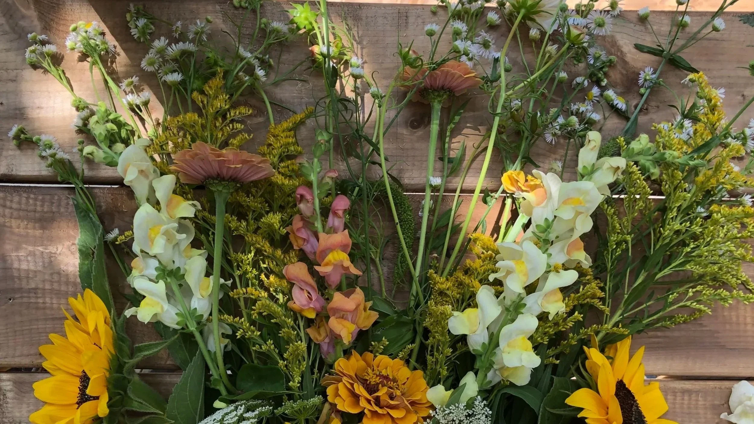 Mélange de fleurs sauvages, zinnias et snapdragons