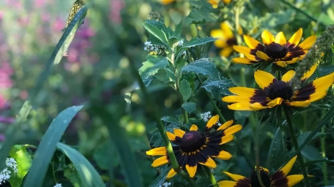 Les fleurs buissonnantes ont souvent une croissance similaire aux plantes hautes à la différence qu’elles forment des tiges plus courtes, mais en plus grand nombre par plant ce qui leur confère une forme plus sphérique. Ces fleurs ont une bonne capacité de remplissage de l’espace et trouvent une place de choix au pied de leurs cousines érigées. On retrouve ici les marguerites, rudbeckies, échinacée, delphiniums, veronica et achillea.